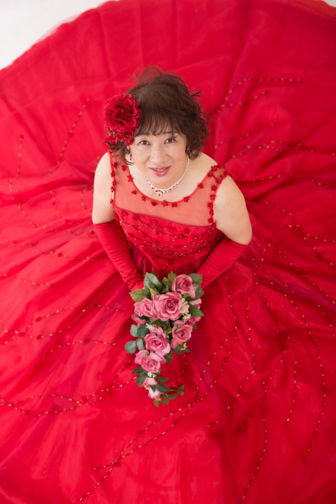 赤いドレスでご夫婦一緒に還暦のお祝い フォトスタジオチェルシー埼玉県入間市のおしゃれな写真館